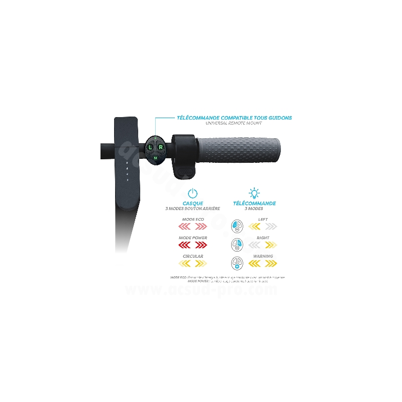 - Clignotant directionnel par télécommande (fonctionne avec pile CR2032 fournie)