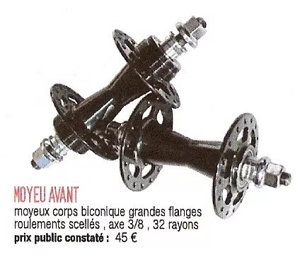 * Moyeu corps biconique * Grandes flanges * Roulements scellés * Axe 3/8 * 32 rayons * Couleur: noir uniquement